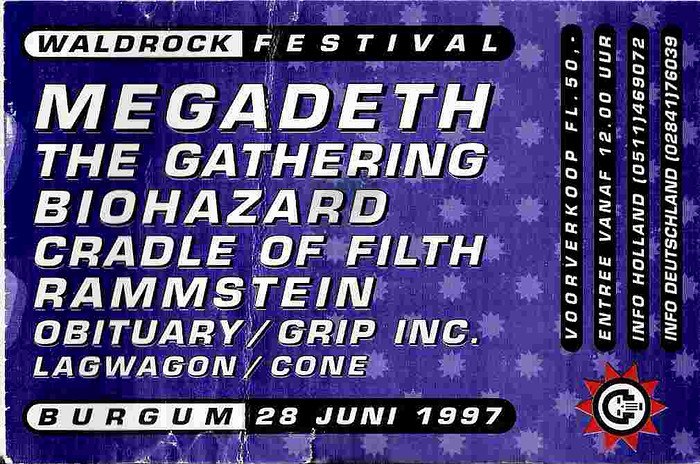 Megadeth, The Gathering, Cradle of Filth, Biohazard, Obituary and 3 others