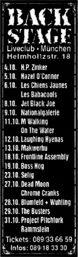 - The show was originally planned to be held at Charterhalle, but was moved to Backstage club.