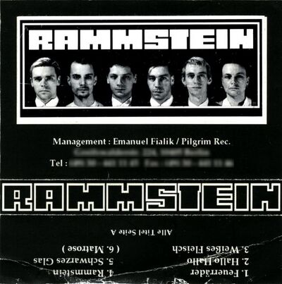"Geboren aus den schönsten Männern von Feeling B., The Inchtabokatables, Orgasm Death Gimmik und der Firma vereint RAMMSTEIN ein excellentes Ensemble begabter Solokünstler zur Inspiration einer Generation, die sich dereinst nach ihnen benennen wird."