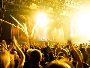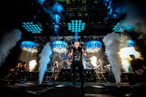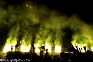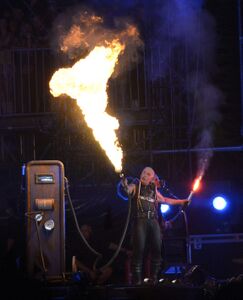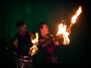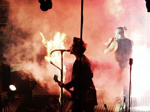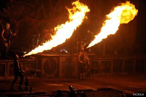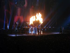 | Fire would shoot out of the floor, corresponding with Schneider's drum hits. |