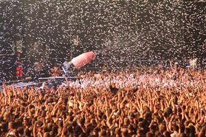 | Near the end of the song, a confetti cannon would activate, launching confetti throughout the audience. |