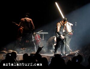 | Before the last part of the song, a green curtain of flames would ignite at the front of the stage. This effect originates from the Sehnsucht Tour. |
