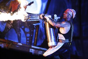 | Till would use a small flamethrower to light up the cooking pot. After a couple of attempts, he would not be satisfied and switch the flamethrower for a massive flambé burner. When using this burner on the pot, it would create small explosions. |