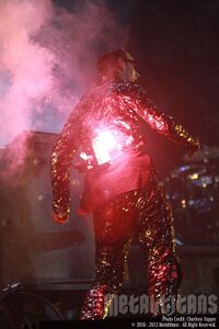 | A smoke bomb attached to the back of Till would go off, effectively covering parts of the stage in red smoke. |