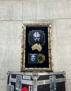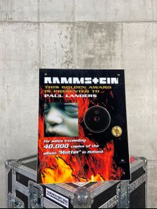 Paul received this "Herzeleid" Platinum Award from Motor Music in 1998, in recognition of more than 500,000 albums sold in Germany. The award is in used condition. The surface shows some scratches, is partially flaked. In addition, there are dents on the edges.