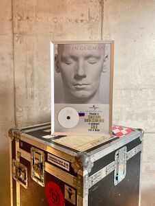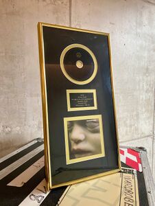 Olli received this "Zeit" Gold award from Universal Music Belgium in Summer 2022, in recognition of more than 10,000 albums sold in Belgium. The award is in used condition and is missing the glass pane