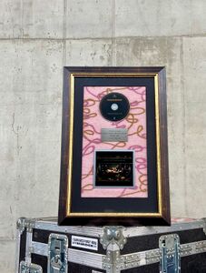 The Band received this Platinum Award from Universal Music, in recognition of more than 200,000 albums sold in Mexico. The award is in used condition. The glass pane and frame show some scratches and dents.