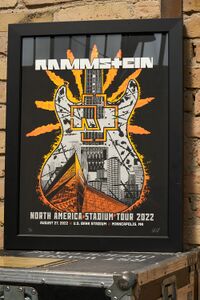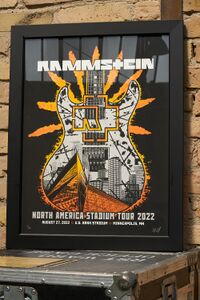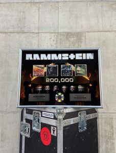 Rammstein received this award from the U.S. Bank Stadium as part of their sold-out show of the North America Stadium Tour 2022 on August 27 in Minneapolis, MN. The award is in used condition.