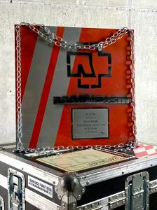 In 2017 Rammstein received the „Preis für Popkultur“ in the category „Most Impressive Live Show“. The award is in used condition.