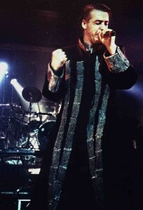 | Till would come out to sing the song with a whip. During the song he would occasionally hit himself with it. | |