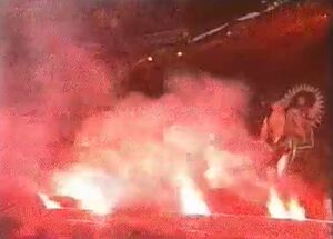 | There is only one known time it was used. After the intro of the song the curtain behind the stage would be set on fire and completely burn down. | |