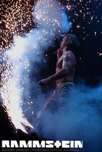 | Till would shoot with a flamethrower after each time he said "Rammstein" during the final part of the song. | |