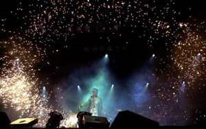 | Throughout the concert, Flake would have a contraption attached to his arm. While performing his "dance", the contraption would start functioning as a sparkler firework and Flake would make circular motions with his arm. | |